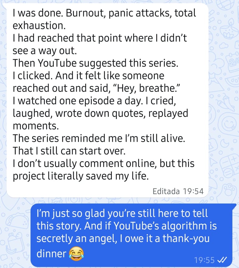 And because I made it back, I decided to offer the hand I once wished someone had offered me. That’s how a simple idea was born, the one that created this channel: